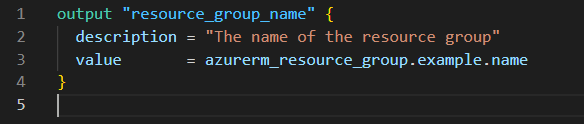 This example shows an output that will display the name of the resource group after the deployment is complete.